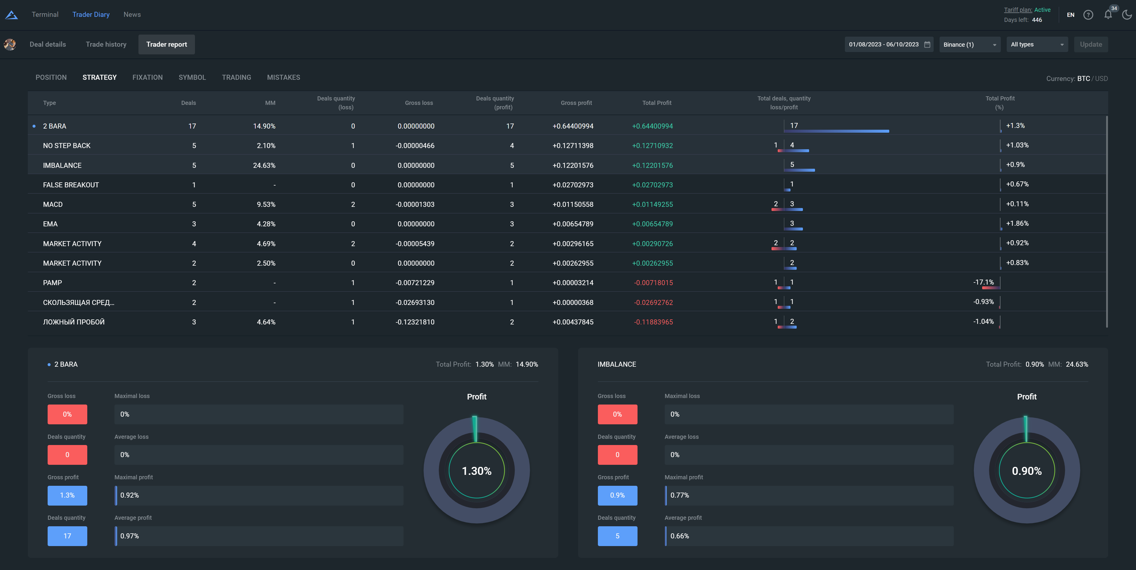 This report shows with which type of trading the best result is achieved.