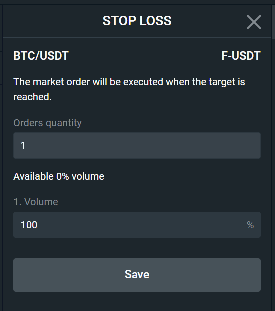 \- Set the Stop Loss level by clicking on the chart above or below the previously set limit order.