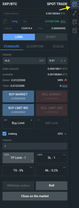 Depending on the trading type, select leverage and if necessary hide order visibility (iceberg)