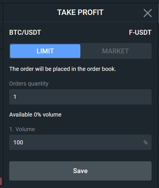 \- Set the Take Profit level by clicking on the chart above or below the previously set limit order.