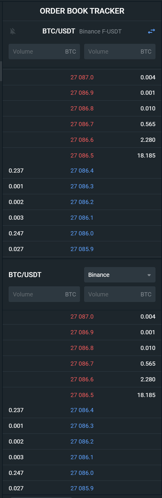 Для сравнение объёмов между разными типами торговли или биржами нажмите иконку сравнить.